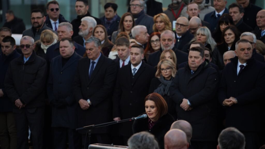 Стајале су мајке, сестре, кћерке, синови, рођаци и пријатељи једни до других, држећи нијемо у рукама слике својих најмилијих… Ћутали и у даљину гледали, сјећали се њихових ријечи, заклетви и погледа. Бога молили за њихове напаћене душе И још једном им свијећу упалили да им освијетли пут до мјеста гђе иду само бесмртни.